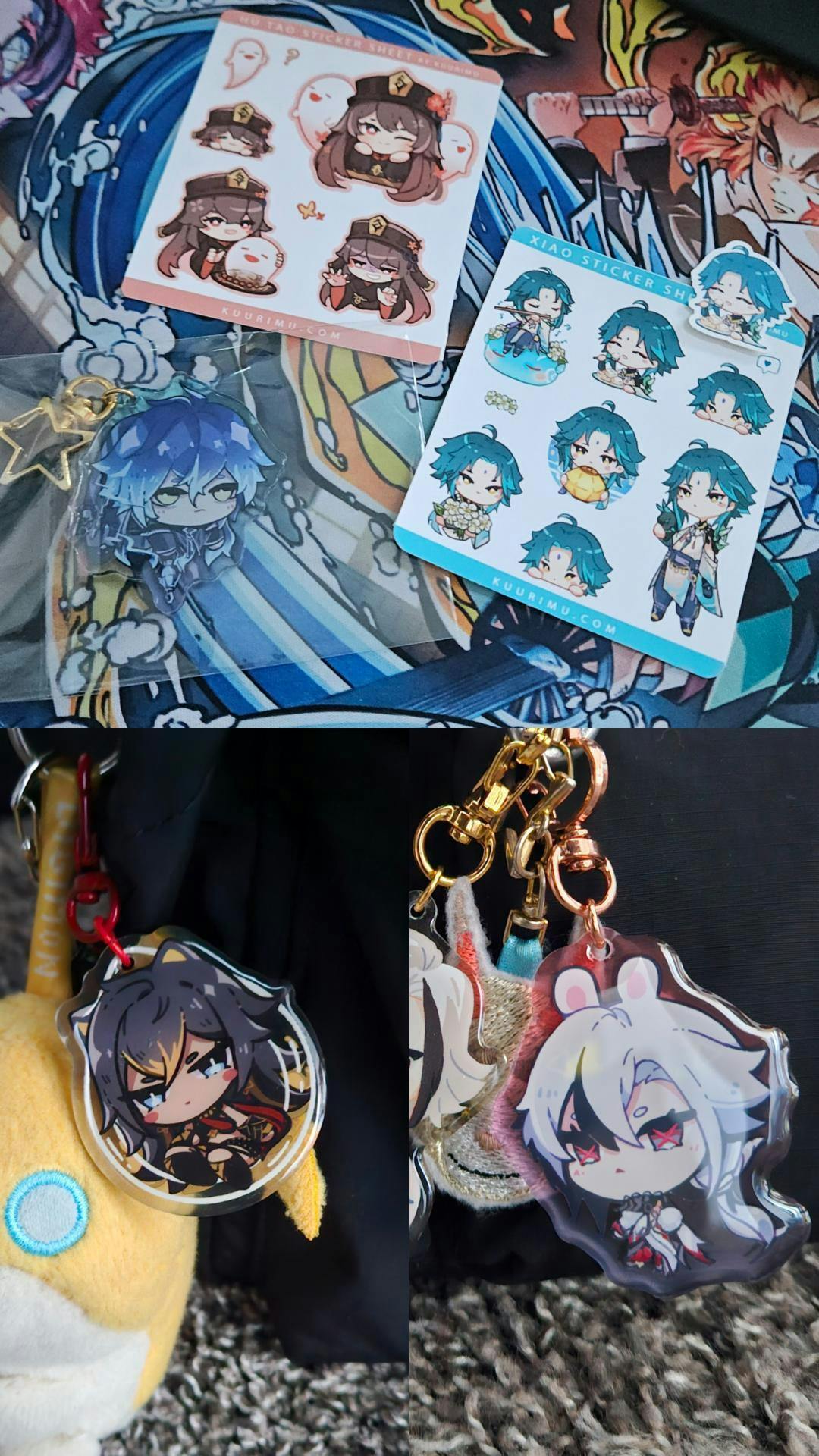 Cute acrylic keychain featuring Genshin Impact characters in bunny ears.
