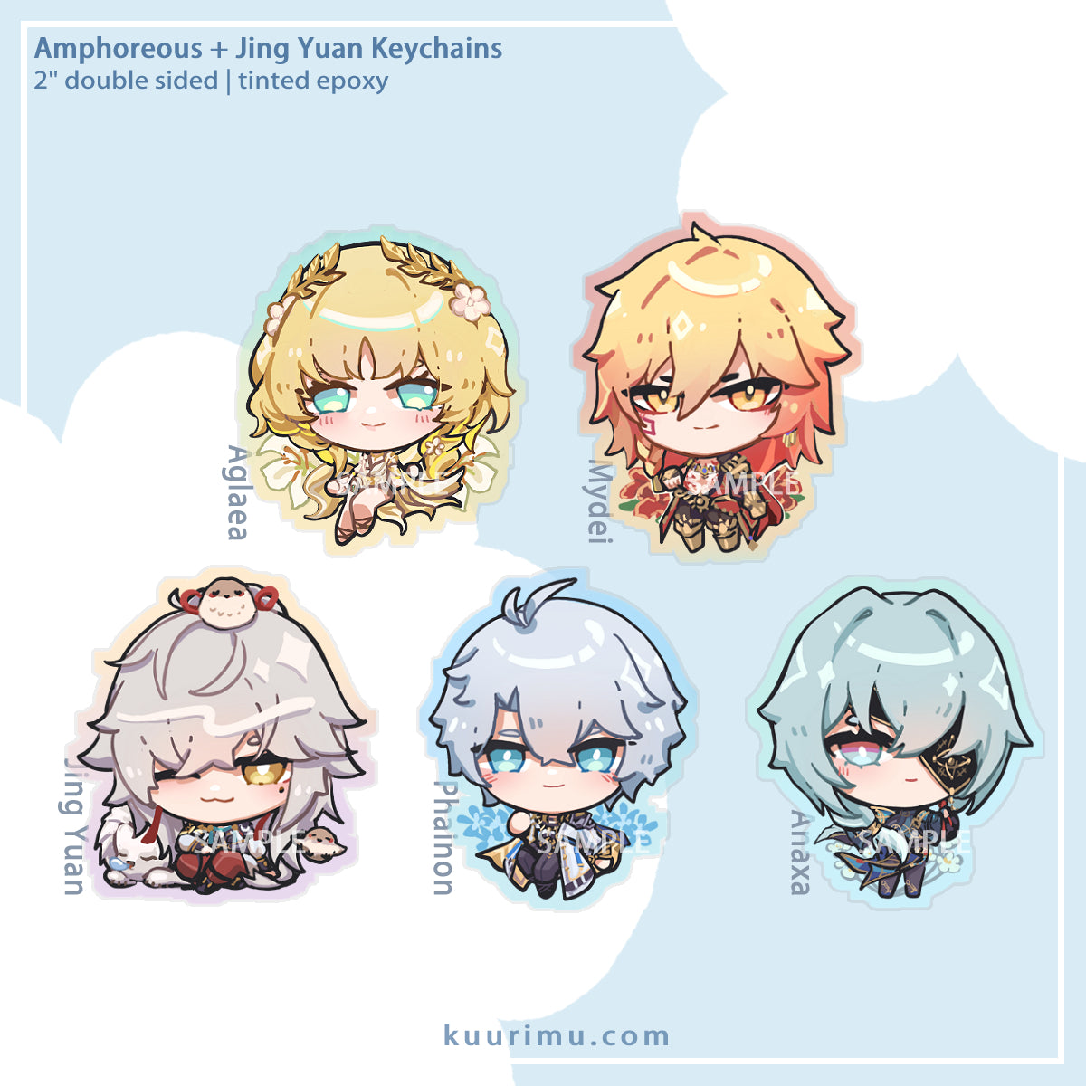 Charms are double sided. Featuring Amphoreous characters + Jing Yuan